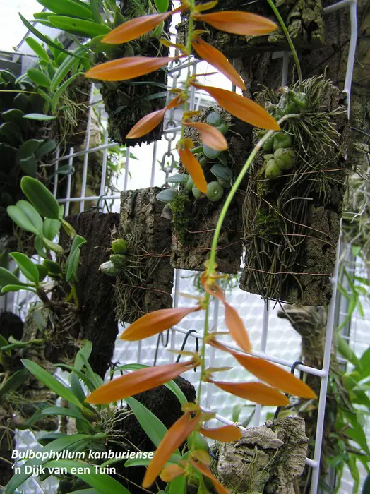 Kan in pot, hangmand of beter nog gemonteerd op schors.