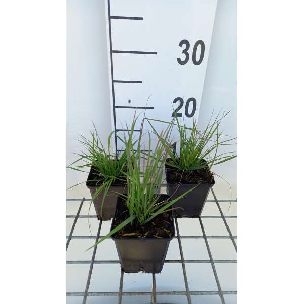 Bloeit met dichte, smalle pluimen van donkerpaarse bloemen die later tot lichtbruin verkleuren.