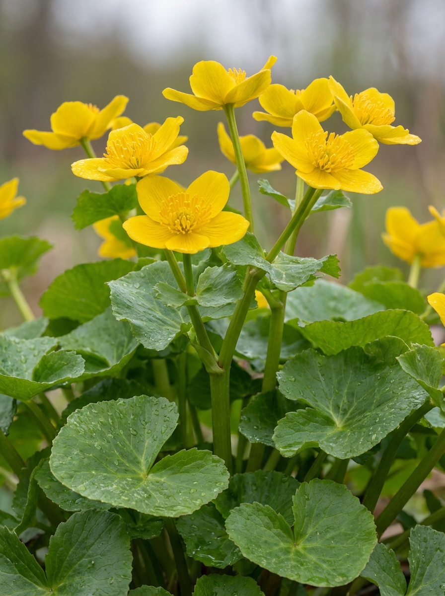 Men vind deze inheemse Caltha palustris vaak langs sloten, beken en vochtige weiden.