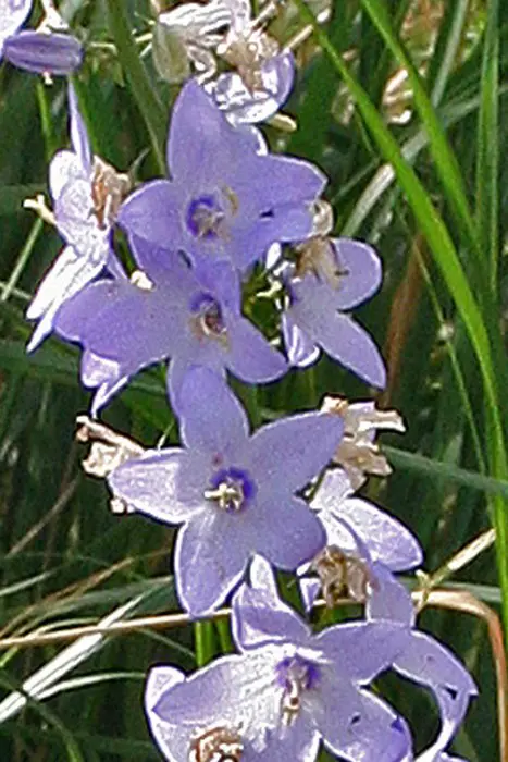 Campanula pyramidalis is een zeer hoge Campanula met paarsblauwe stervormige bloemen met ietsjes wit in het hart.
