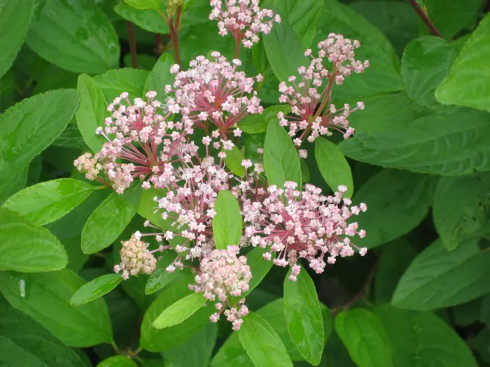 Ceanothus x pallidus 'Marie Simon' is een bladverliezende struik met kleine donkergroene bladeren en bloeit met lange vleesroze bloempluimen.