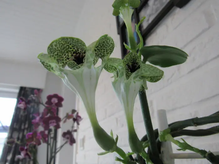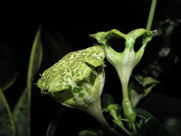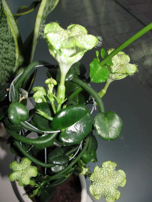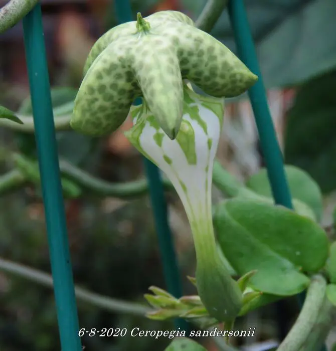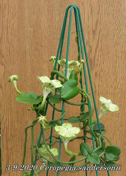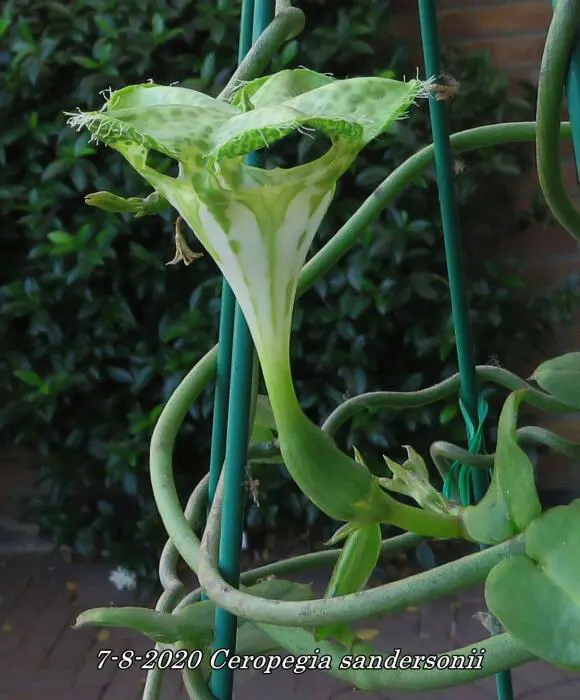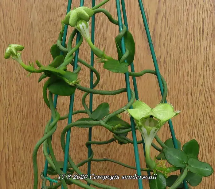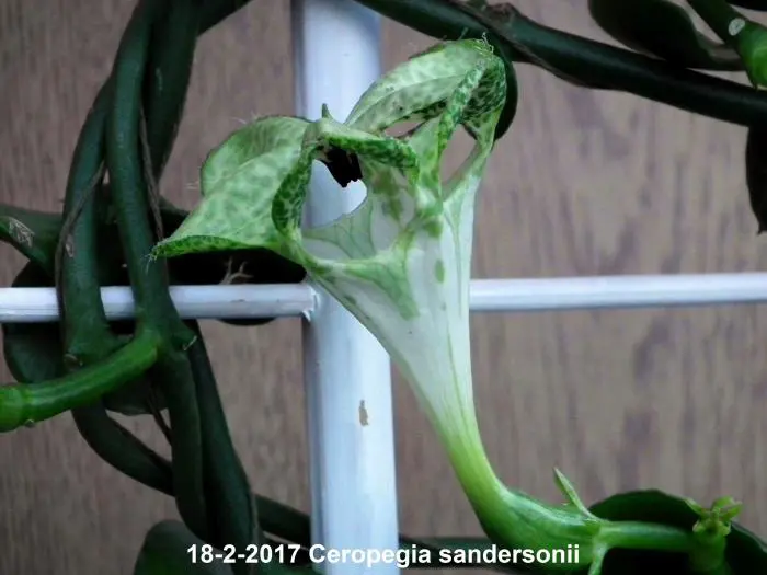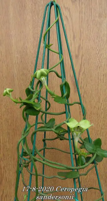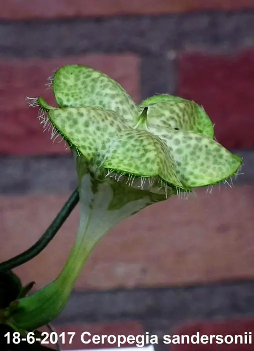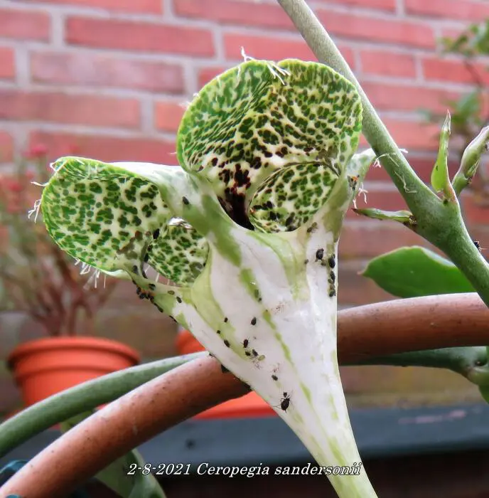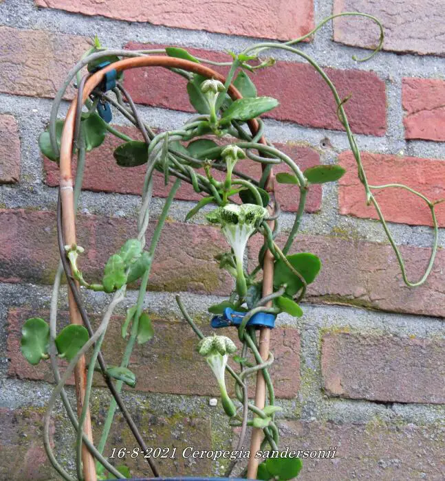Ceropegia sandersonii is afkomstig uit Zuid-Afrika maar wordt hier in ons klimaat als kamerplant gehouden.