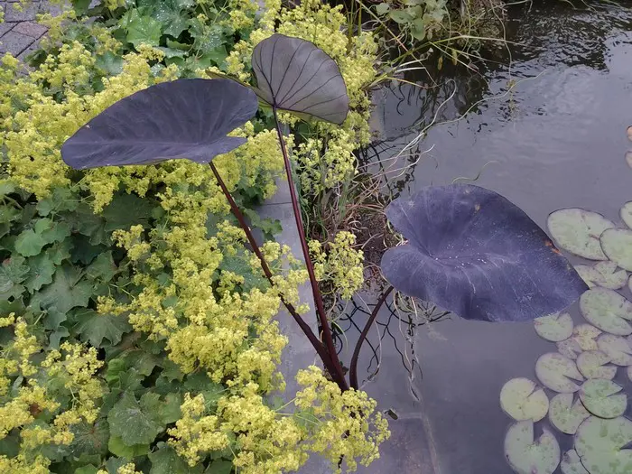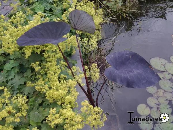 Colocasia esculenta 'Black Magic' is een tropische plant afkomstig uit Azië en blijft kleiner dan de meeste andere varianten.
