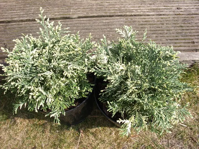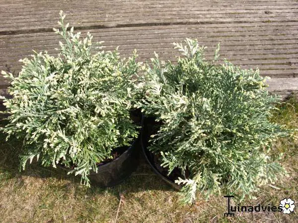 Chamaecyparis lawsoniana 'Pearly Swirl's' is een laagblijvend traaggroeiend conifeertje.