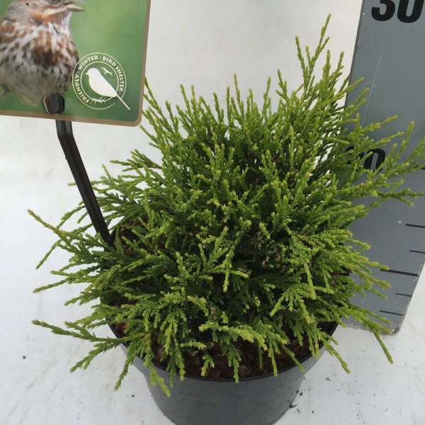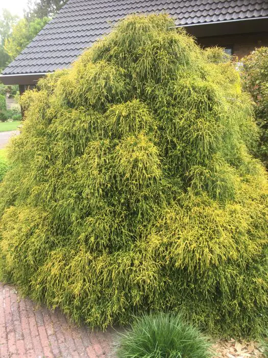 Chamaecyparis pisifera 'Sungold' is een treurvormige dwergcypres van 250cm met een brede ronde vorm.