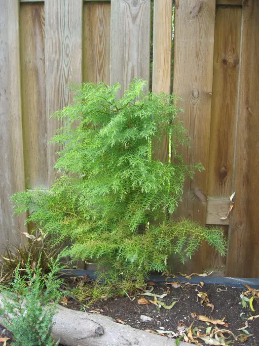 Deze ceder krijgt in het najaar kleine ronde kegeltjes met gebogen doornen.