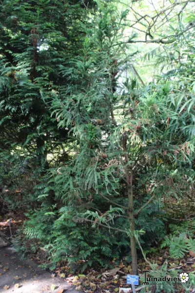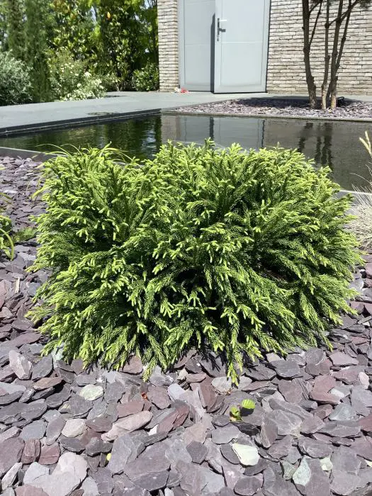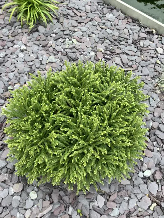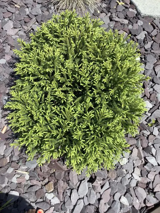 Cryptomeria japonica 'Globosa Nana' is een bolvormig geelgroen conifeer. Het is door zijn compacte vorm erg geschikt voor de rotstuin.