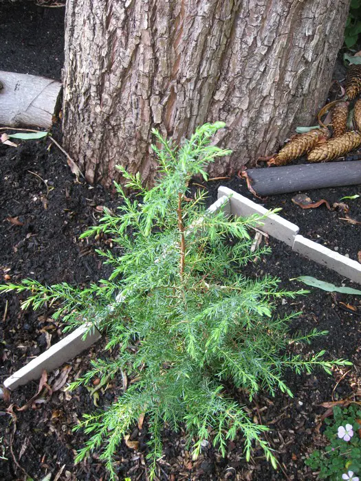 Juniperus virginiana 'Hibernica' groeit als een smalle conifeer tot 3/5m hoog en 150cm breed met een blauwgroene kleur.