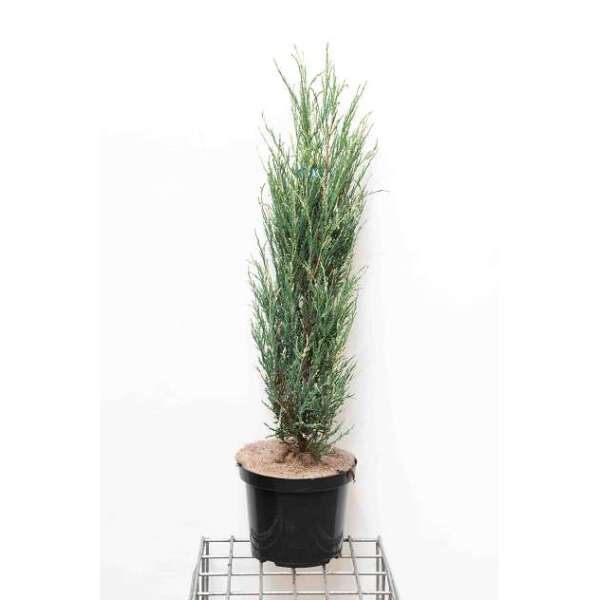 Juniperus scopulorum 'Blue Ivory' is een rechtopgaande conifeer en lijkt qua kleur en groeiwijze op 'Blue Arrow' maar dan met cremekleurige bonte scheuten.