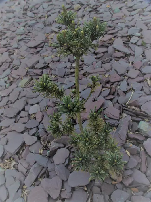 Pinus parviflora Beran'' is een ronde, goed vertakte dwergconifeer met zilver/blauwgroene naalden.