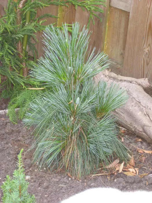 Pinus x schwerinii 'Wiethorst' is een rechtop groeiende dwergconifeer met zilver/blauwgroene, zachte naalden.Produceert al op jonge leeftijd erg veel gele kegels.