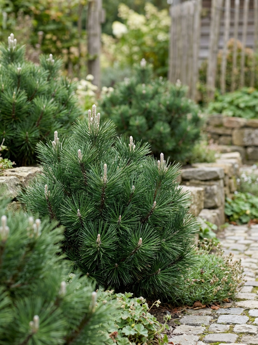 Pinus thunbergii 'Thunderhead' is een compactgroeiende conifeer met een onregelmatige vorm en zeer aantrekkelijke zilvergrijze kaarsen (knoppen) die mooi afsteken tegen de diepgroene lange naalden.