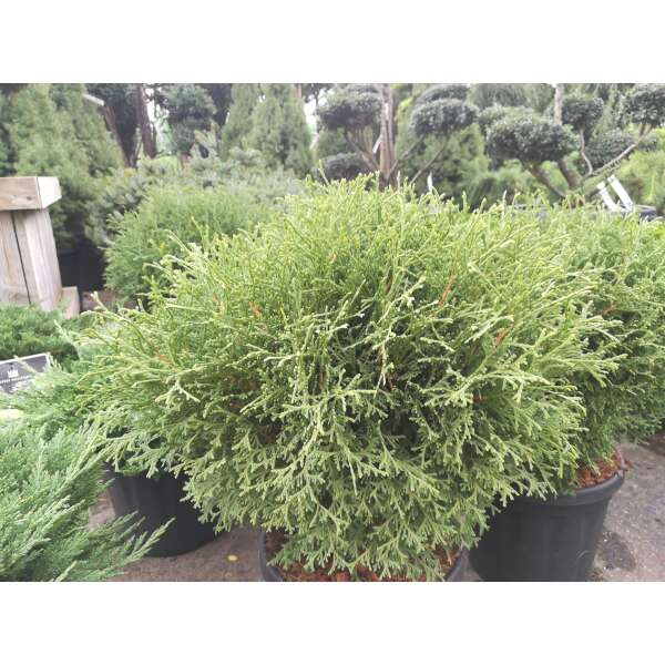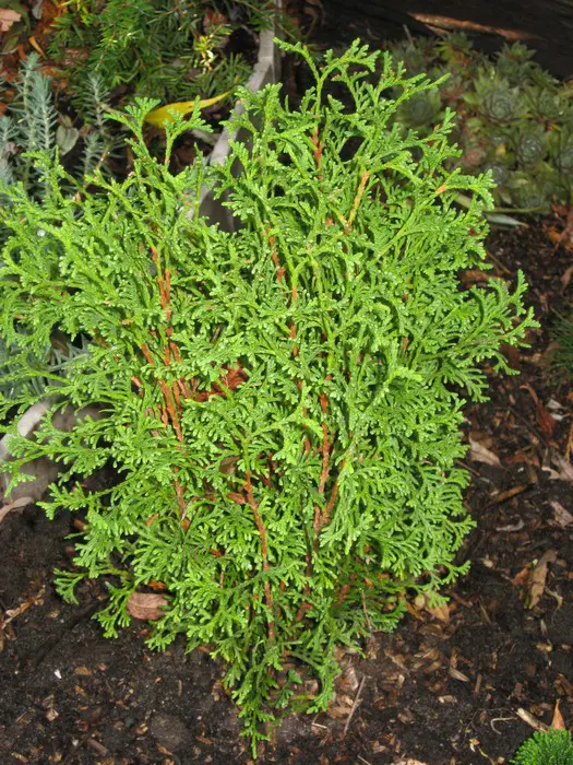 Thuja occidentalis 'Tiny Tim' is een bolvormig groen dwergconifeertje dat in het najaar bronsgroen verkleurt.