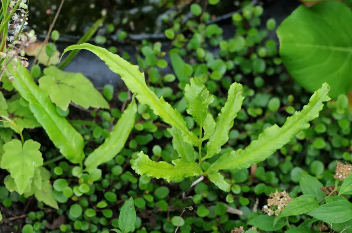 Coniogramme japonica is een aantrekkelijke varen met rechtopstaande, donkergroene bladeren met een lichtgroene visgraatpatroon.