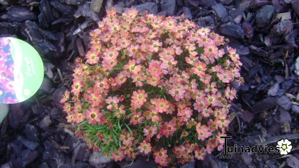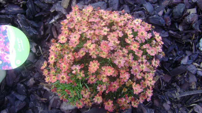 Coreopsis 'Little Penny' is een zeer rijkbloeiende, compacte heuvelvormige plant met kleine koperkleurige bloemen. Wordt vaak als een éénjarige gekweekt.