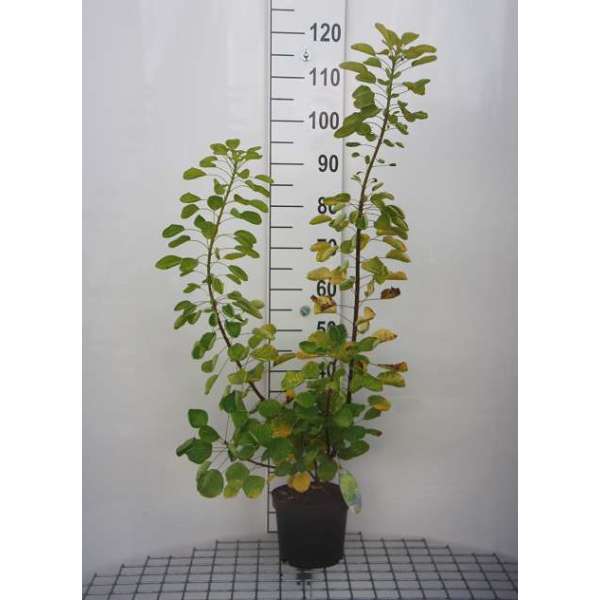 De struik wordt vooral gekweekt om zijn mooie bladkleur, minder voor de pluimvormige groengele tot koperroze bloei. Soms blijft de bloei zelfs achterwege.