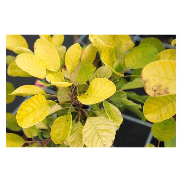Cotinus coggygria 'Golden Spirit' heeft geelgroene bladeren met een warme oranjerode herfstkleur.