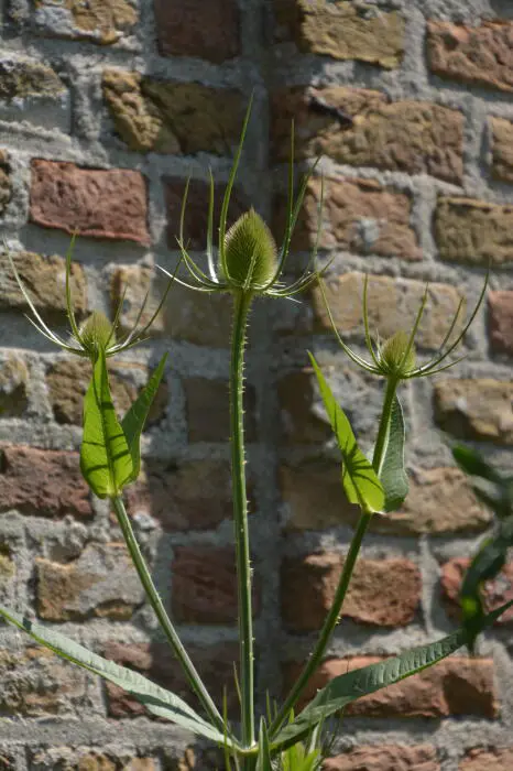 De bloemhoofdjes werden vroeger gebruikt om wol te kaarden.