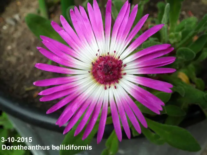 Dorotheanthus bellidiformis is een éénjarige plant afkomstig uit Zuid-Afrika met succulente blaadjes.