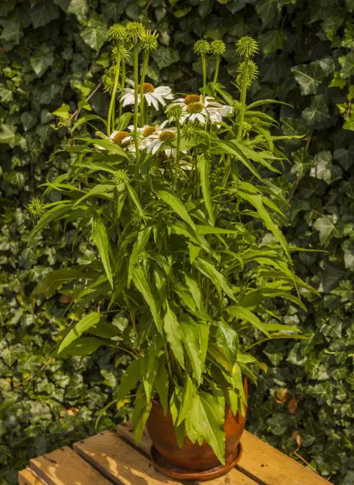 Een lage (40cm) Echinaceae met horizontale witte bloemen