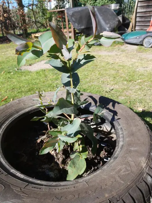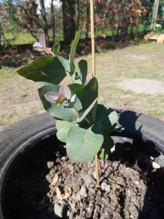 Eucalyptus neglecta heeft uiterlijk een verschillend blad dan de andere soorten. De bladeren zijn hier groter, rond en slap, de blauwe twijgen vierkant.