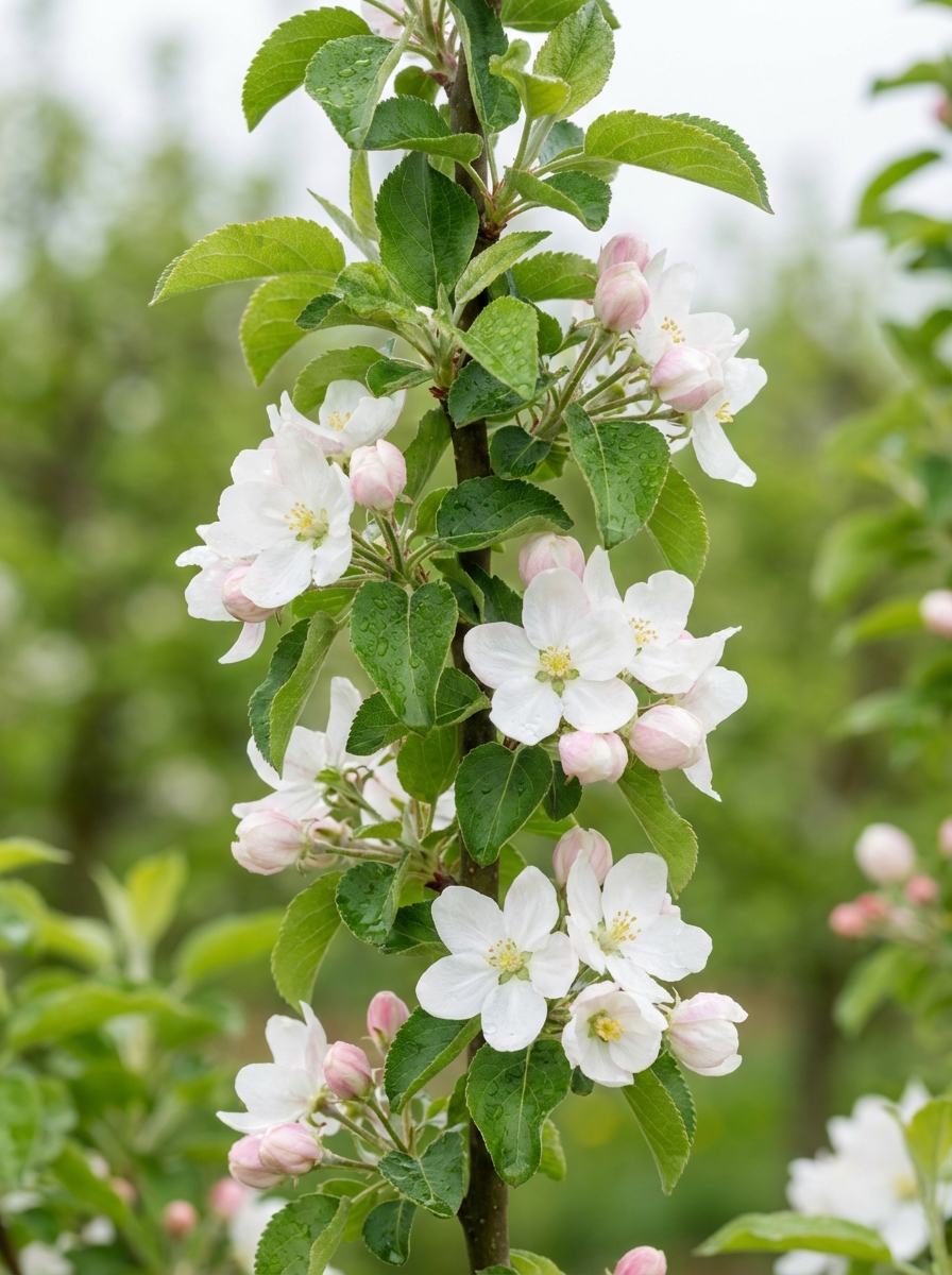 Malus ballerina 'Gold Sensation' is een smal opgaande, zuilvormige appelboom of patioappel.