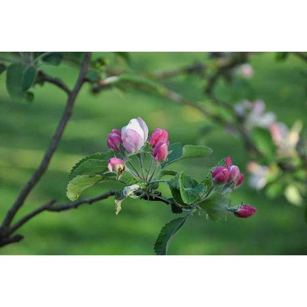 De vroegbloeiende Malus domestica 'Granny Smith' produceert de alom bekende groene zure appel met soms een gele/roze blos. Het zijn tamelijk kleine appels met vast vruchtvlees.