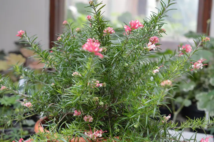 Grevillea juniperina 'Oleacea' is afkomstig uit Australië waar de struik 3m hoog kan groeien.
