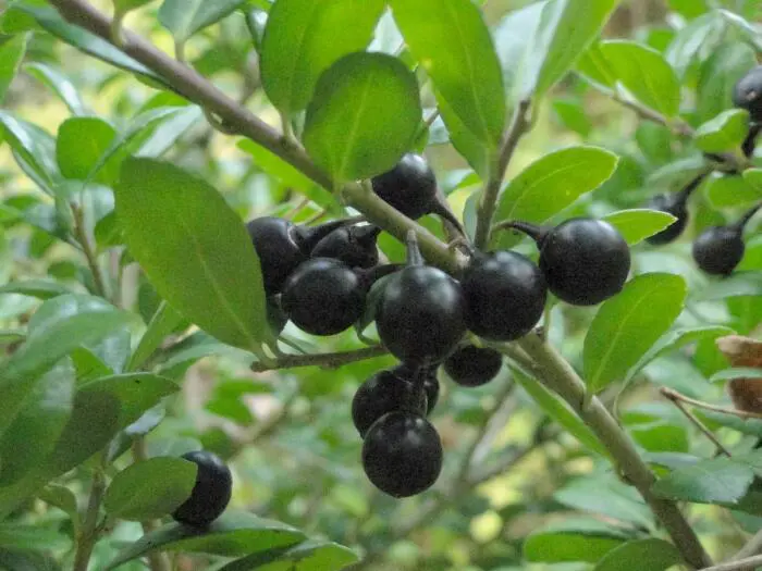 In de nazomer komen er heel kleine groene besjes aan die in de herfst zwart verkleuren.
