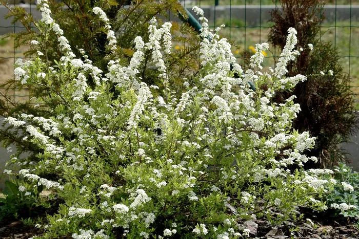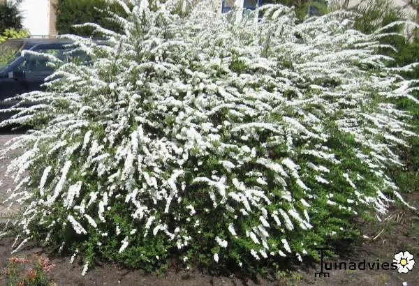 Spiraea x cinerea 'Grefsheim' is een kleine, compacte sierlijke struik met overhangende takken bedekt met zuiverwitte bloempjes. Ze worden gevolgd door vruchten die erg begeerd worden door vogels.
