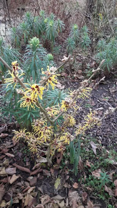 Hamamelis x intermedia 'Amanda' is een recht opgaande struik met een zeer bijzondere bloei. Fleurt het seizoen op met trosjes van licht geurende, oranjegele filamenten op de kale takken.