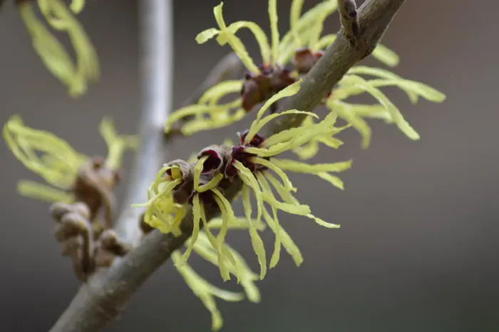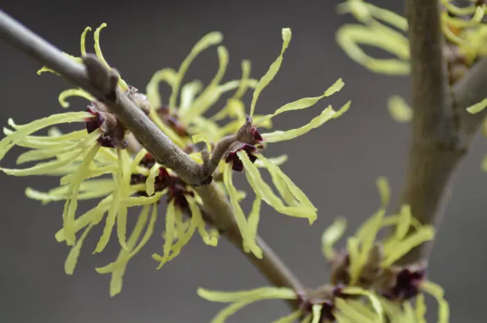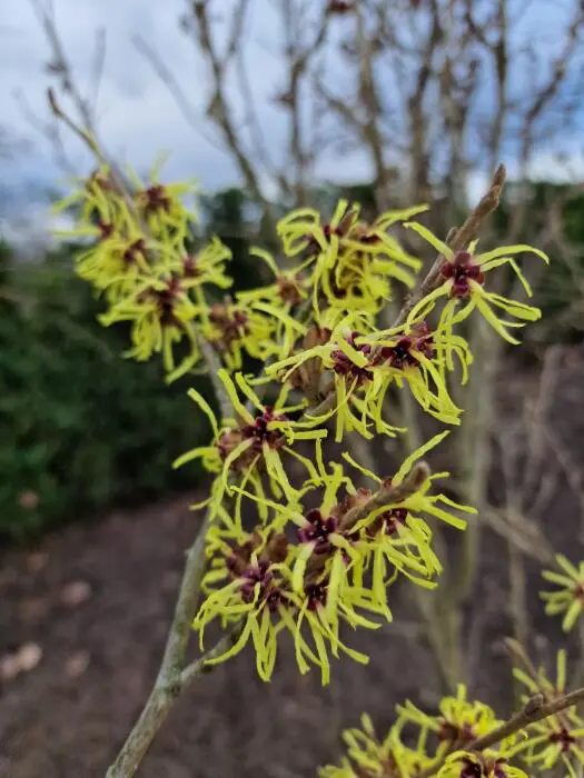Hamamelis x intermedia 'Pallida' is een recht opgaande struik met een zeer bijzondere bloei. Fleurt het seizoen op met trosjes van licht geurende, zwavelgele filamenten op de kale takken.
