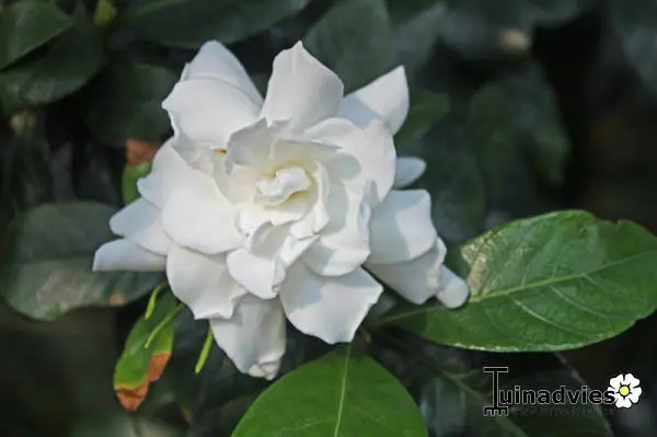 Bloeit met zoet geurende witte bloemen, geel in de keel.
