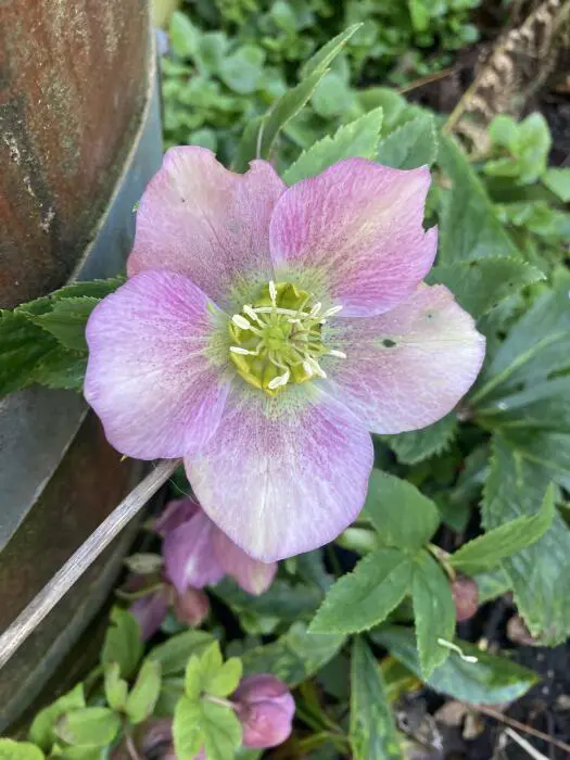Helleborus orientalis ´Pink LADY' bloeit vroeg in de winter met roze bloemen.