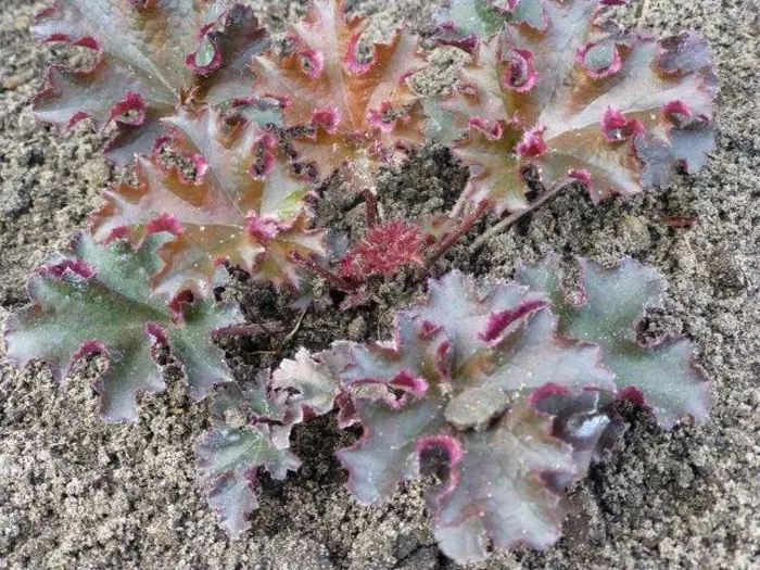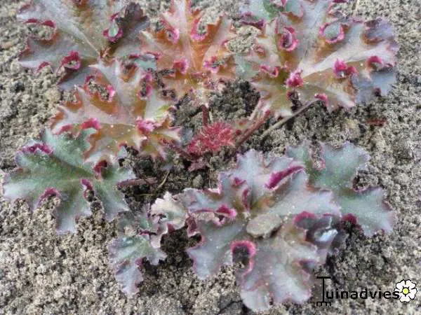 Heuchera's wortelen vrij oppervlakkig en dienen dus iets dieper dan de kroon geplant te worden.
