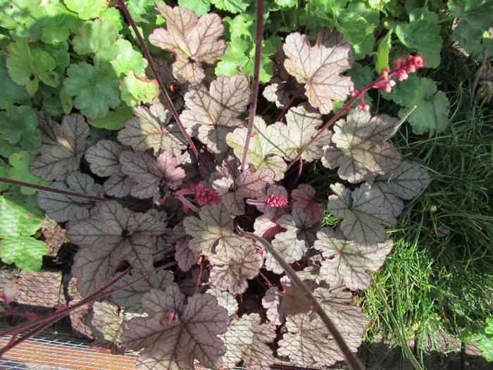 Heuchera's wortelen vrij oppervlakkig en dienen dus iets dieper dan de kroon geplant te worden.