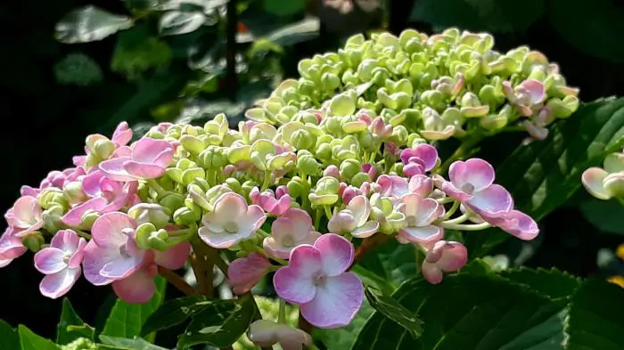 Hydrangea macrophylla ‘Ayesha’ is een bijzondere boerenhortensia met unieke, lepelvormige bloemblaadjes. De bolvormige bloemen bestaan uit kleine, licht gekrulde bloemetjes die zorgen voor een speels en verfijnd effect. Afhankelijk van de zuurgraad van de bodem kleuren de bloemen roze tot blauw.