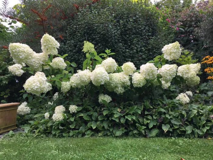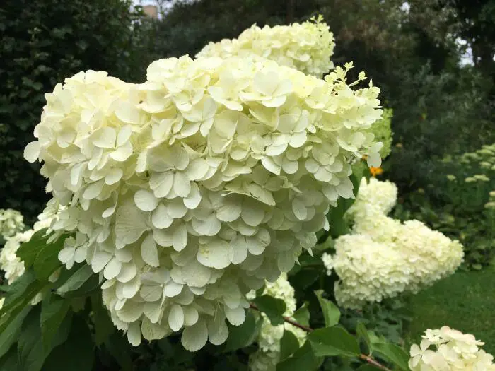 Hydrangea paniculata 'Polar Bear' is een compacte stevige hortensia met zeer grote pluimvormige limoengroene bloemhoofden. Ze verkleuren snel wit.
