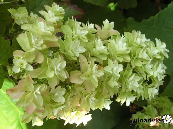 Deze vanaf half juli tot in september bloeiende hortensia wordt ongeveer 1 meter hoog. Opvallend aan deze variëteit zijn de dubbelbloemige bloemschermen.
