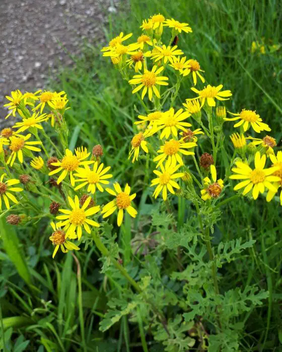 De plant begint te bloeien voor 25juli, feestdag van Sint Jacob vandaar de Nederlandse naam Jacobskruiskruid.
