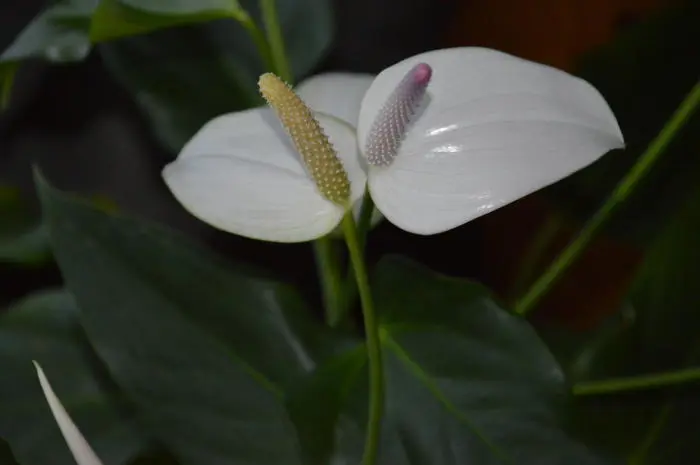 Bij Lakanthurium (Anthurium andreanum) en Flamingoplant (Anthurium scherzerianum) bestaat de bloeiwijze, een kolf, uit een verdikte as met talrijke, kleine, dicht opeen staande bloemen met aan de voet een groot en fraai ogend schutblad, de bloeischede. Die schede staat op een lange steel en lijkt uit was gemaakt - dé grote aantrekkingskracht van beide planten.