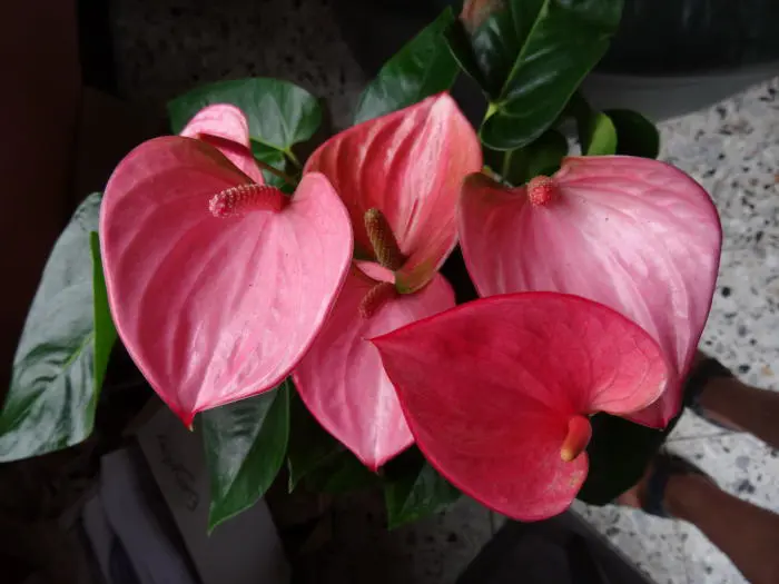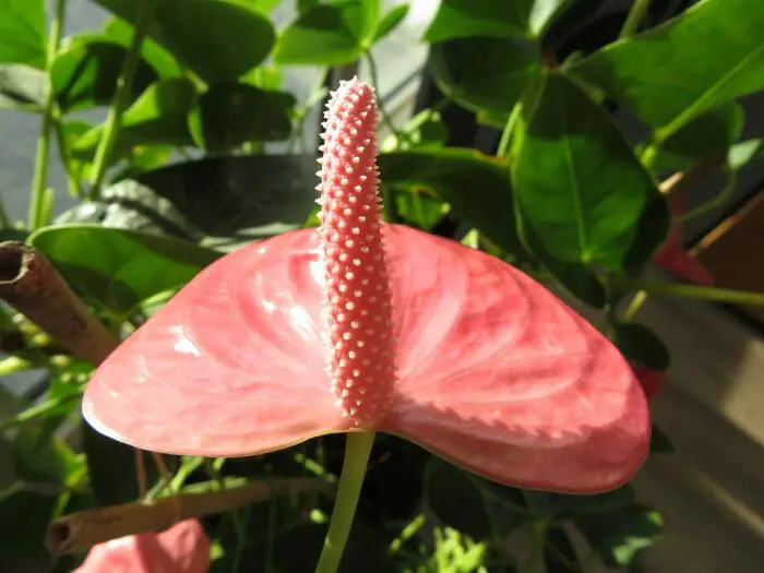 De Flamingoplant staat als kamerplant bekend. De Lakanthurium wordt gebruikt als snijbloem én als kamerplant. De hartvormige bladeren voelen stevig aan en zijn bedekt met een stralende glans.