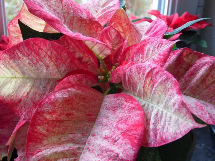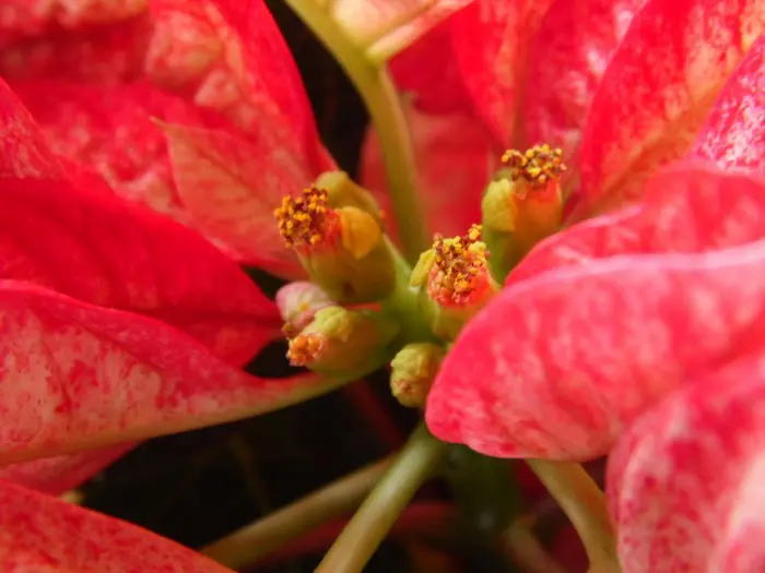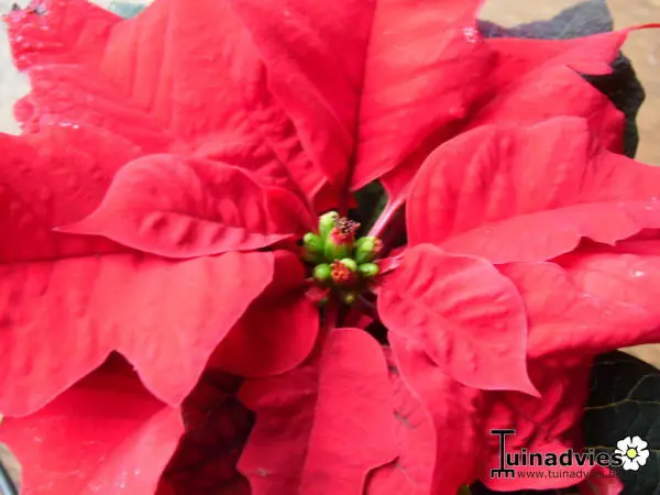 Het bijzondere aan deze kamerplant zit hem in de felgekleurde schutbladeren. De eigenlijke bloempjes aan het einde van de stengel zijn licht geel-groen, en daardoor vallen ze eigenlijk niet op. Het zijn de schutbladeren die van de kerstster een echt kerstsymbool hebben gemaakt.