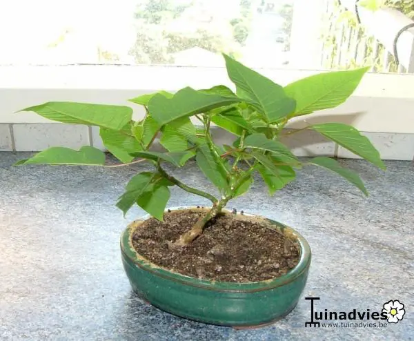 Benevel de plant zo nu en dan. Als de lucht te droog wordt, kan bladval optreden.