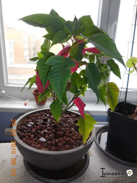 Euphorbia pulcherrima wordt hier in ons klimaat als een éénjarige beschouwd.