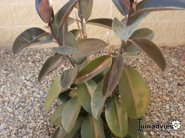 Ficus elastica groeit als grote bomen in Indië tot Indonesië maar wordt hier in ons klimaat als kamerplant gehouden.