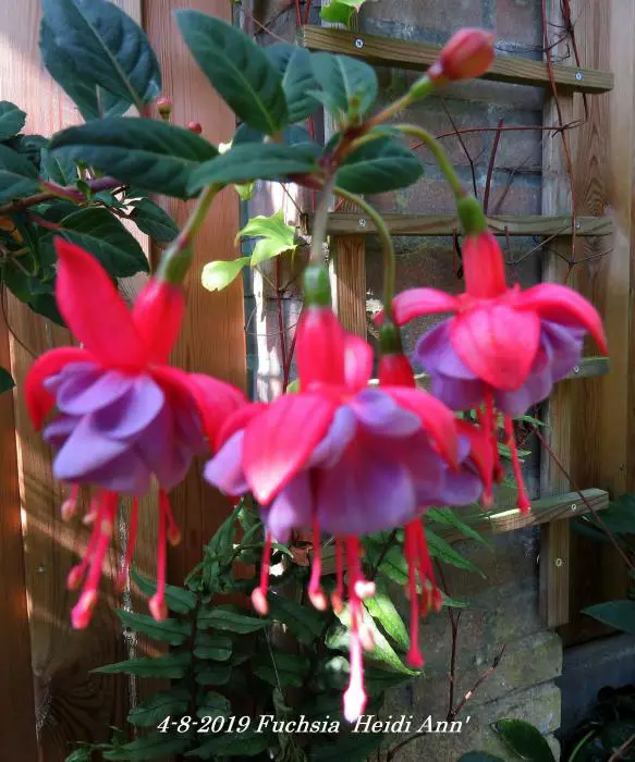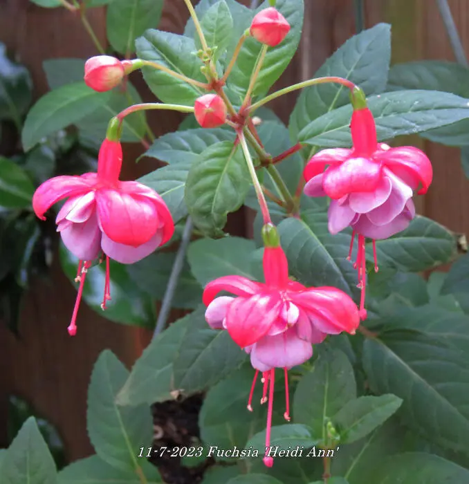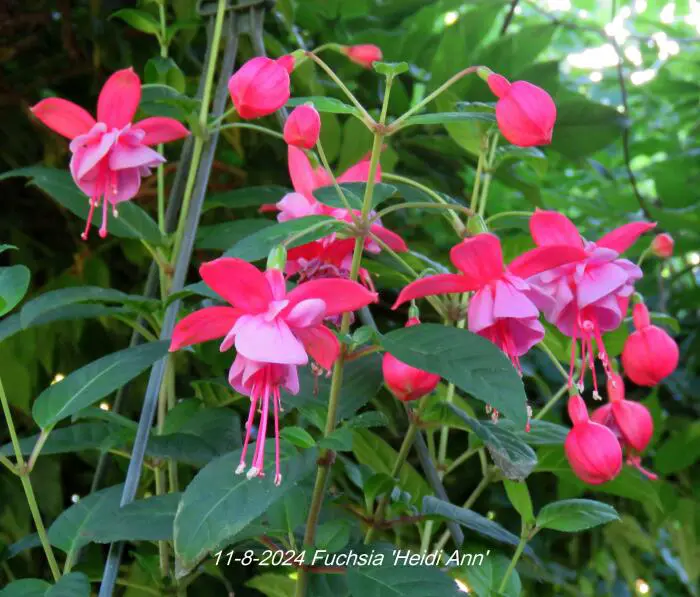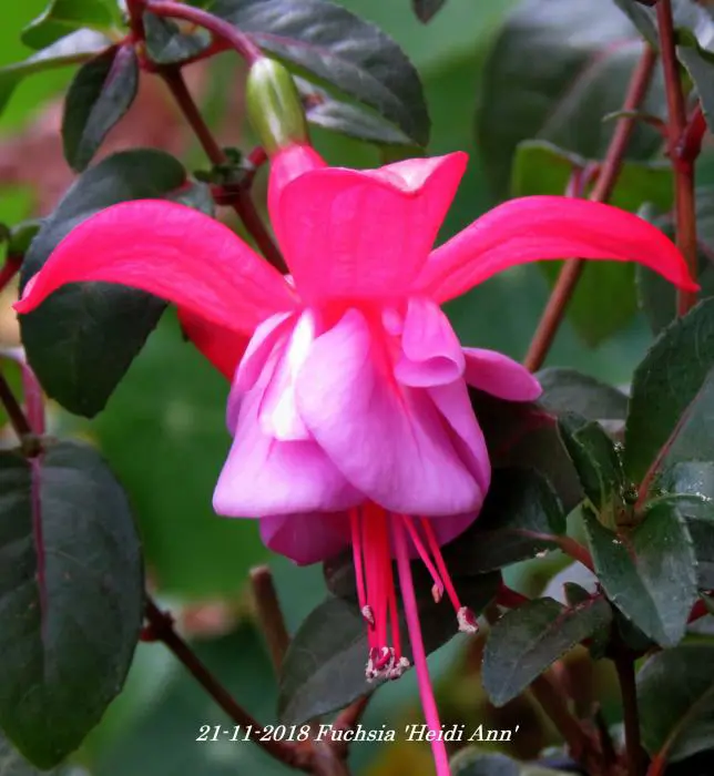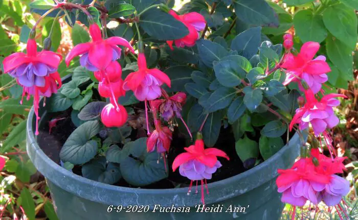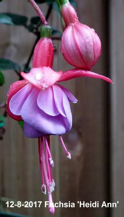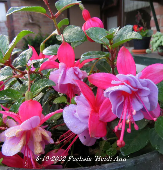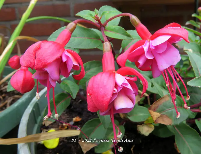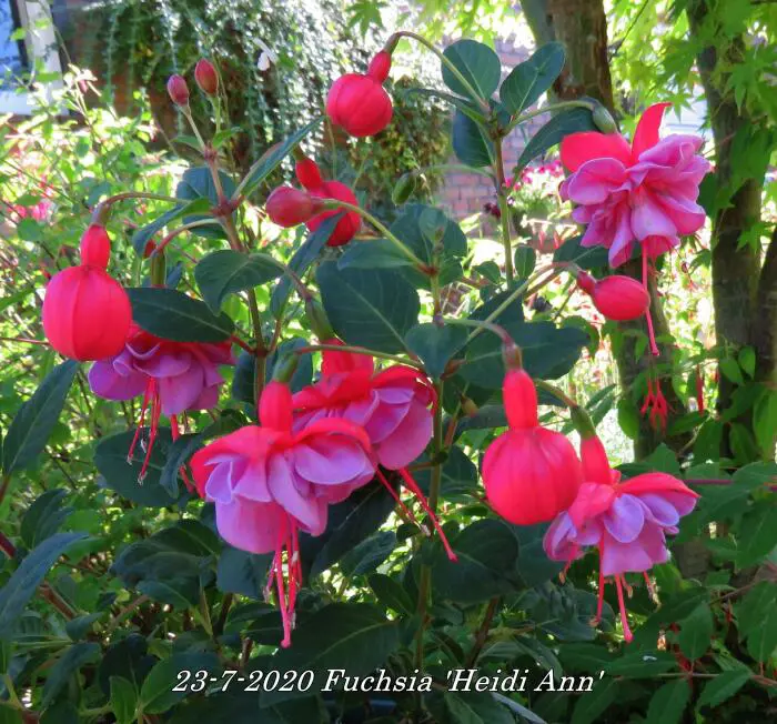Fuchsia 'Heidi Ann' is een rechtopgroeiende bellenplant met dubbelbloemige bloemen.