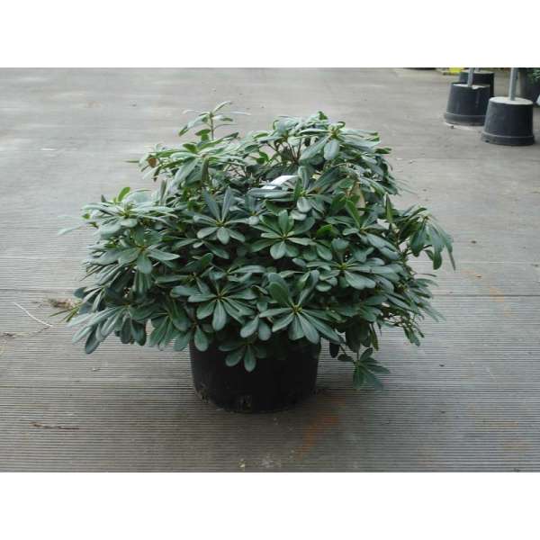 Pittosporum tobira 'Nanum' is een laagblijvend en bolvormig struikje bloeiend met roomwitte bloemen, heerlijk geurend naar sinaasappel.