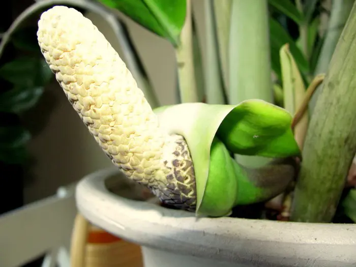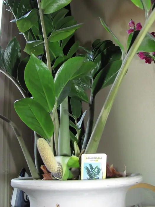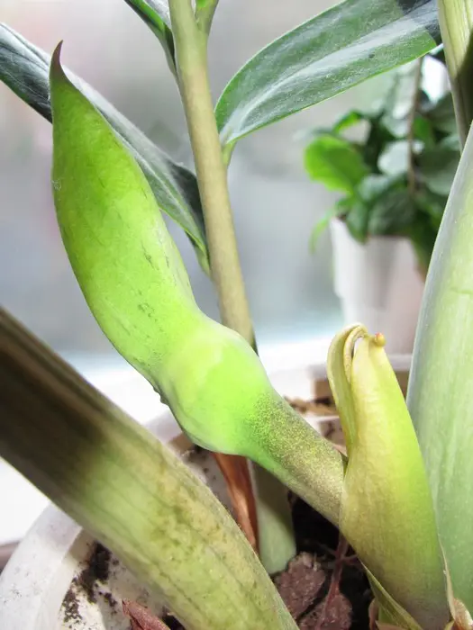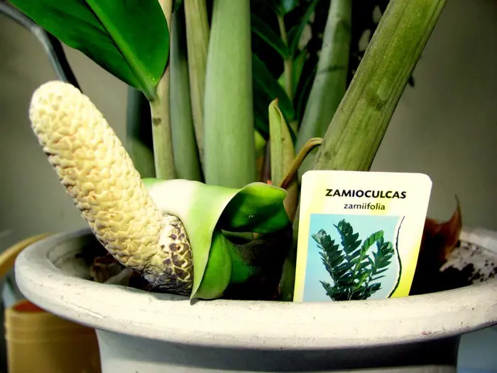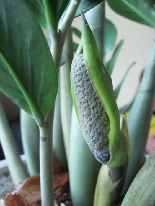 Zamioculcas zamiifolia is afkomstig van Oost-Afrika, waar ze ook in bloei te