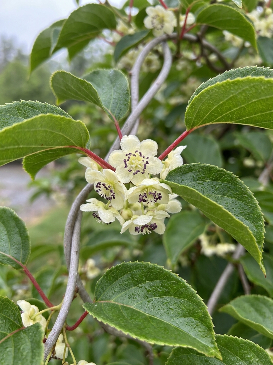 Actinidia arguta 'Nostino' (mannelijk) is een sterk groeiende slingerplant verwant aan de Kiwi maar dan wel volkomen winterhard.